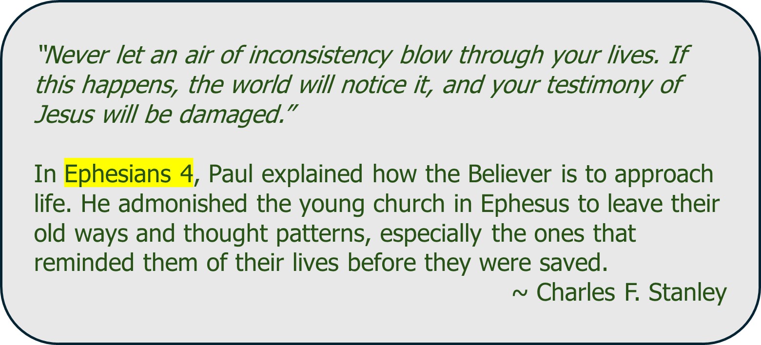 Sha’ul offered five examples of what living the new life means in the context of relationships with others. All of the examples include a negative command, a positive command, and a spiritual principle on which the commands are based. At the base of all of Sha’ul’s commands is a God-centered spiritual foundation.